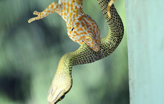 นครนายก คิดว่าจะกินแค่ตับเล่นกินทั้งตัว คลิปงูเขียวกลืนตุ๊กแกทั้งตัว เจ้าของบ้านถ่ายคลิปไว้ พร้อมส่องเลขบ้านใกล้วันหวยออก