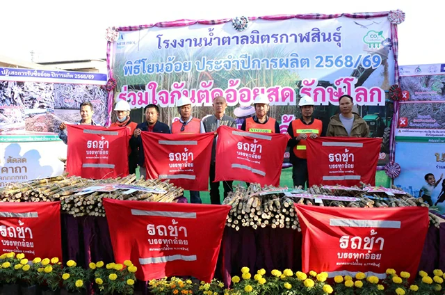 กาฬสินธุ์รง.น้ำตาลมิตรกาฬสินธุ์จัดพิธีโยนอ้อยประจำปีการผลิต รณรงค์ “นะโม ตัดสด”ลดเผา