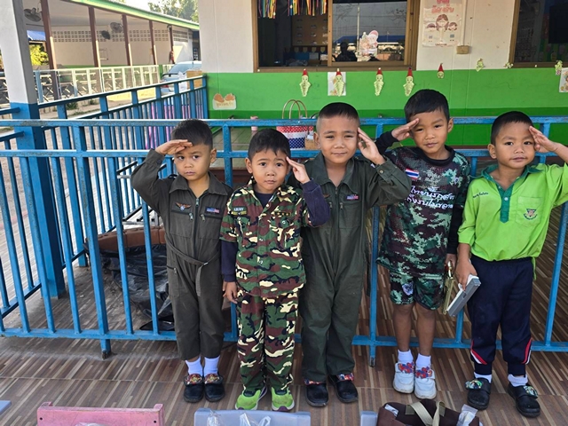 อำเภอบ้านด่าน//งานวันเด็กในโรงเรียนระดับอนุบาล เด็กส่วนใหญ่ใส่ชุดเครื่องแบบทหารมางานวันเด็…