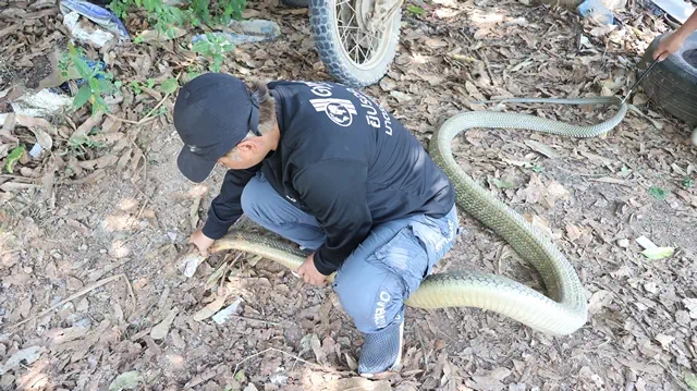 เบตง ชาวบ้านแจ้งกู้ภัยจับงูจงอาง ยาว 4 เมตร หนัก 8 กิโลกรัม อยู่บนต้นมะม่วงข้างบ้าน ปล่อยค…